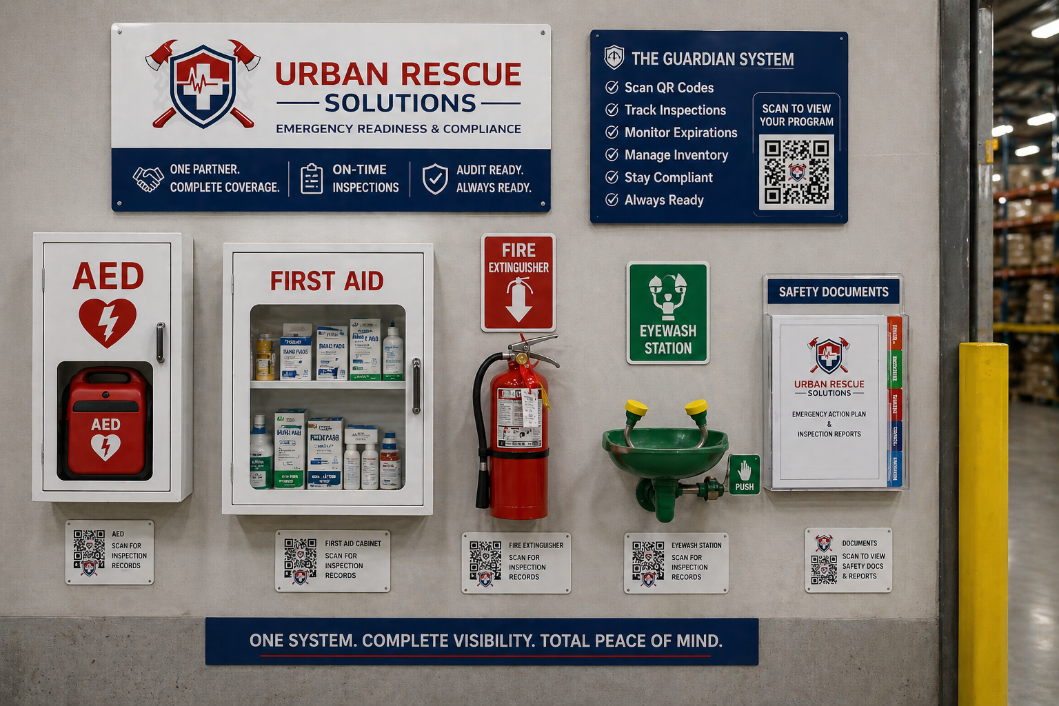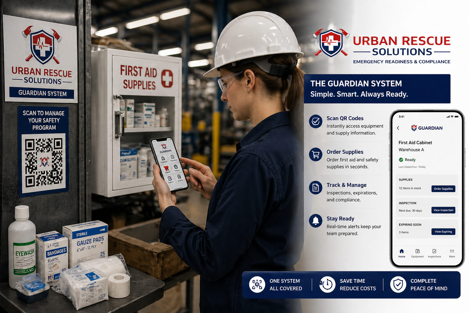 Our Emergency Readiness programs are managed through the Guardian System — a structured, centralized system designed to keep your facility compliant, organized, and rescue-ready at all times.